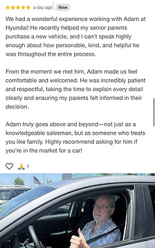 Thank you for visiting my page. If you have any questions or would like to info on any of our vehicles, please share your contact information—I'm here to help. I’m committed to ensuring you receive the best possible deal and a truly exceptional experience. Buying a new vehicle should be exciting and stress-free, and I’ll do everything I can to make sure that is your Hyundai Experience!!
